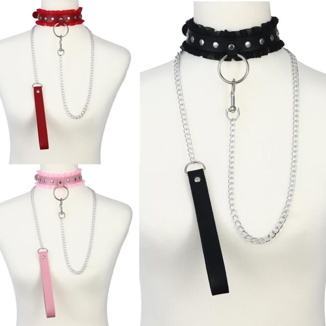 [犬の首輪のような手綱付きのクサリチェーン チョーカー 赤色 レッド 黒色 ブラック ピンク色 プレゼント 妻 夫 彼氏 彼女 旦那 奥さん ジェンダーフリー]