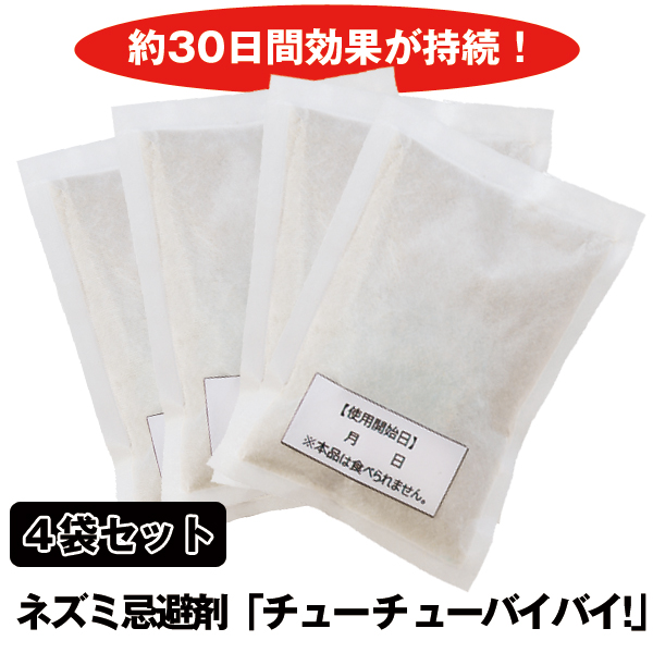 ネズミ忌避剤「チューチューバイバイ!(4袋入り)」(置くだけ 鼠忌避剤 ネズミ駆除 ねずみ撃退 天然成分 伝染病 糞尿被害 日本製)