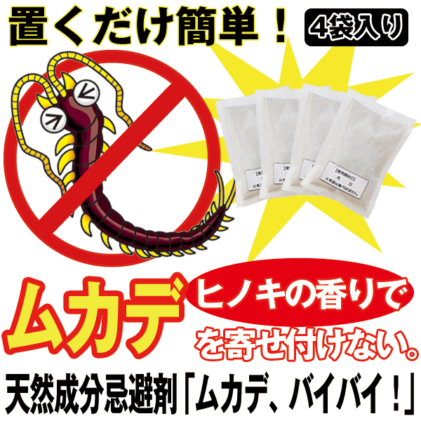 ■百足除け・・・天然成分忌避剤「ムカデ、バイバイ!(4袋入り)」