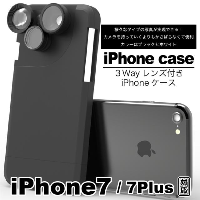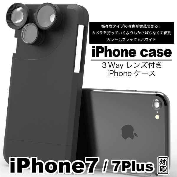 【送料無料】3Way レンズ付きiPhoneケース ブラック ホワイト iPhone7 iPhone7plus スマホケース 写