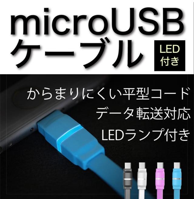 Android ケーブル usbケーブル LED付き 1m 高耐久 microUSB ケーブル 急速 充電 ケーブル 充電器 送料無