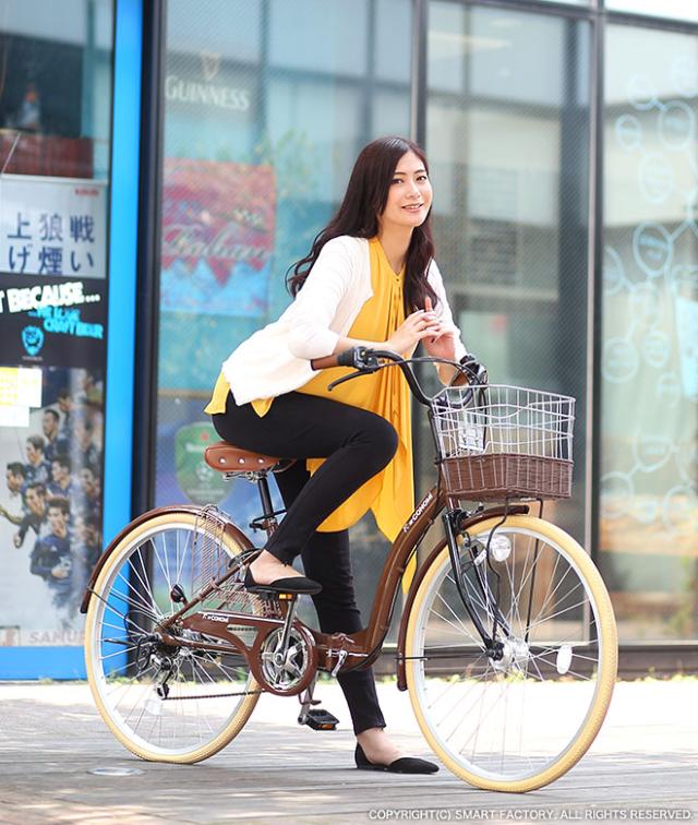 制服のCONOMi 折りたたみ自転車 【全品P3倍】 26インチ オートライト 鍵 カゴ付 6段ギア シティサイクル ママチャリ