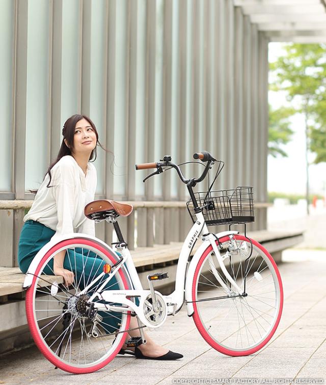 自転車 シティサイクル 【P3倍最終日】 26インチ 折りたたみ自転車 シマノ6段変速 ママチャリ 低床フレーム 全5色 通勤 通勤