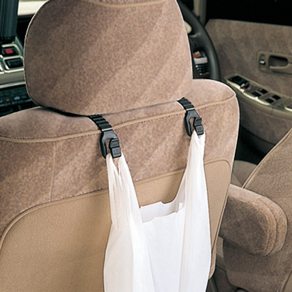 ●前座席のヘッドレストのシャフトに引っかけるだけで使えるフックです。