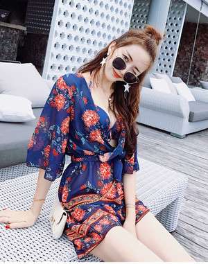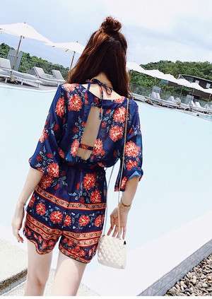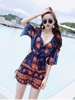 体型カバー 水着 ビキニ 3点セット 大きいサイズ レディース 2019年新作 ビーチウェア 40代 30代 ブラウス チュニック セットアップ ホルターネック シフォン ボヘミアン カバーアップ 着やせ 韓国 ママ水着 オシャレ XL 海 プール マリンスポーツ 海外リゾート