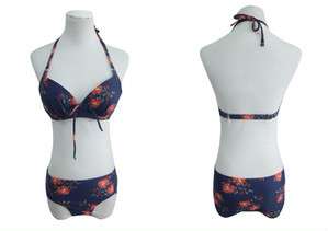 無駄のないシンプルなデザインのビキニ上下セットで花柄がしっかり引き立ちます◎