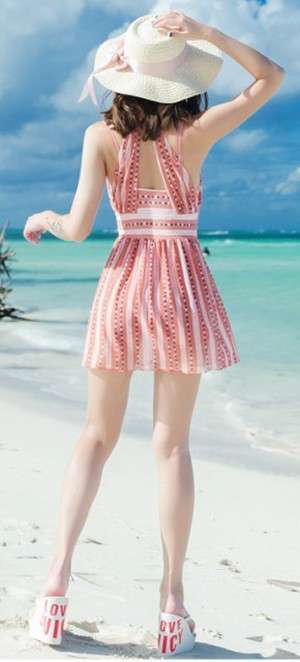 体型カバー 水着 ワンピース 大きいサイズ レディース 2019年新作 ビーチウェア 40代 30代 20代 フレアスカート ホルターネック オールインワン ストライプ シフォン シンプル カバーアップ 着やせ 韓国 ママ水着 オシャレ XL 2XL 3XL 4XL 海 プール マリンスポーツ