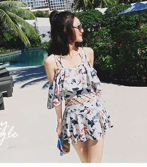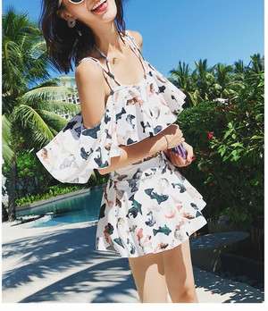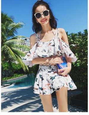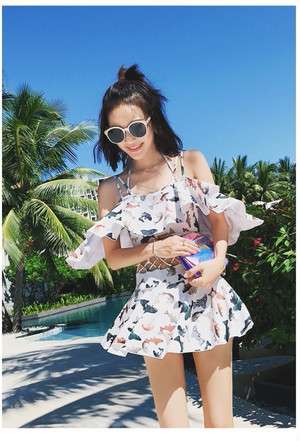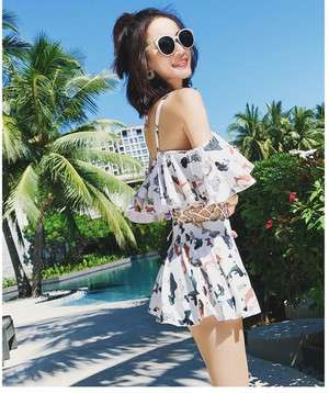 体型カバー 水着 ワンピース レディース 2019年新作 ワンピース水着 ビーチウェア 40代 30代 20代 フレアスカート フリル オールインワン 総柄 透け感 レースカット カバーアップ 着やせ 韓国 ママ水着 オシャレ かわいい 海 プール ビーチ リゾート