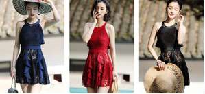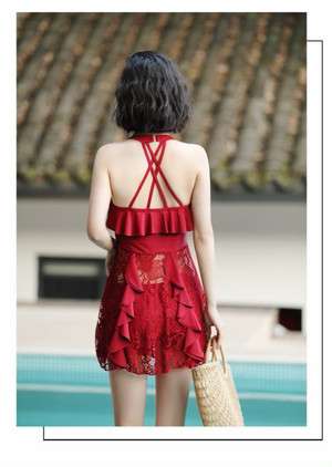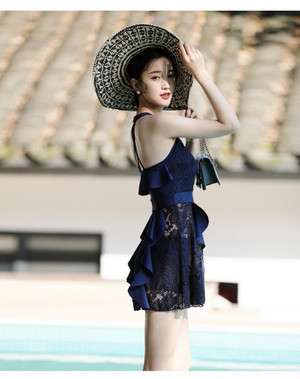 体型カバー 水着 ワンピース ビキニ タンキニ 大きいサイズ レディース 2019年新作 ビーチウェア 40代 30代 フレアスカート フリル レース パッド付き セットアップ セクシー バッククロス 透け感 着やせ 韓国 ママ オシャレ XL XXL 海 プール ビーチ