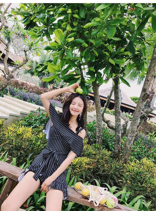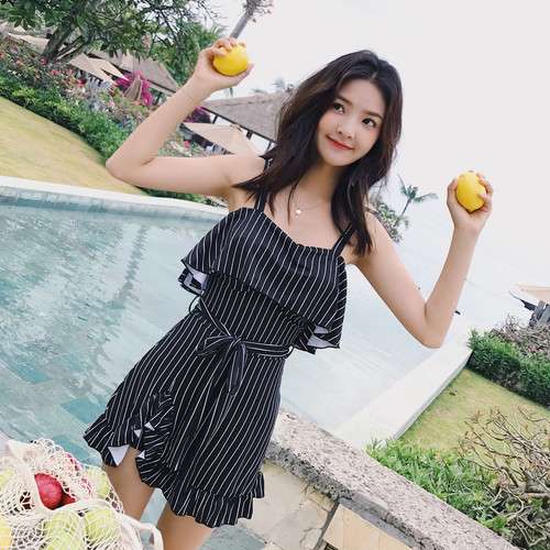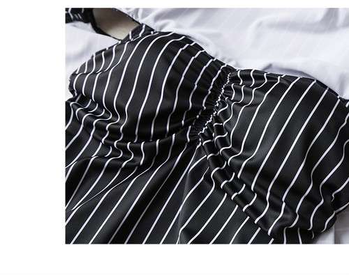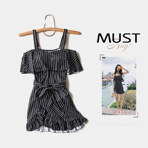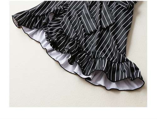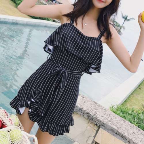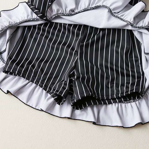 ストライプワンピース水着 ワンピース 水着 フレア リボン オールインワン ショートパンツ 体型カバー 海 プール