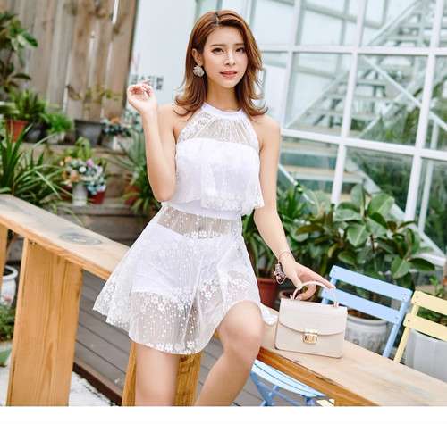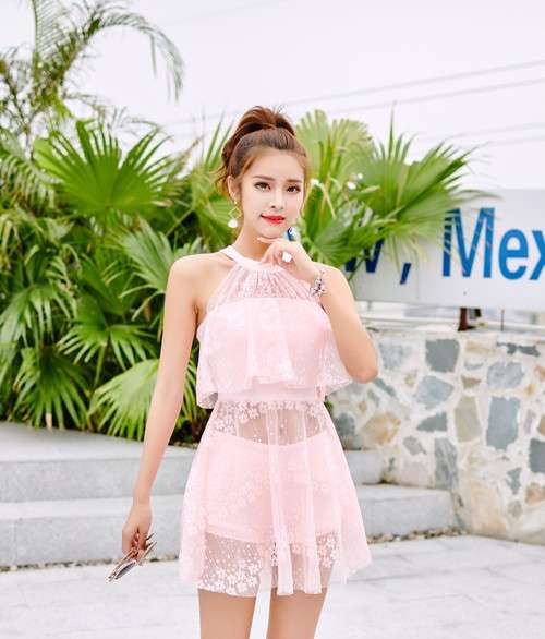 体型カバー 水着 ワンピース ビキニ タンキニ 大きいサイズ レディース 2019年新作 ビーチウェア 40代 30代 フレアスカート フリル レース 花柄 無地 透け感 ホルターネック シンプル 着やせ 韓国 ママ オシャレ XL 海 プール ビーチ ホワイト ブラック ピンク