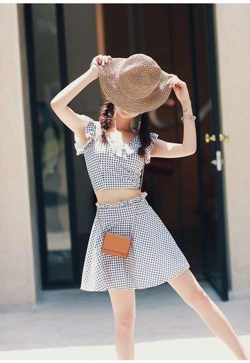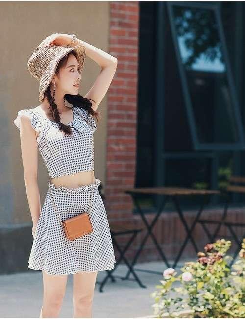 体型カバー 水着 ビキニ タンキニ 3点セット 大きいサイズ レディース 2019年新作 ビーチウェア 40代 30代 20代 フレアスカート フリル セットアップ ギンガムチェック バックシャン リボン カバーアップ 着やせ 韓国 ママ オシャレ XL 海 プール ビーチ ワンカラー