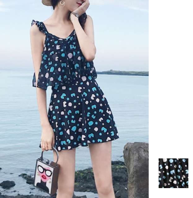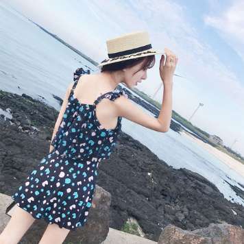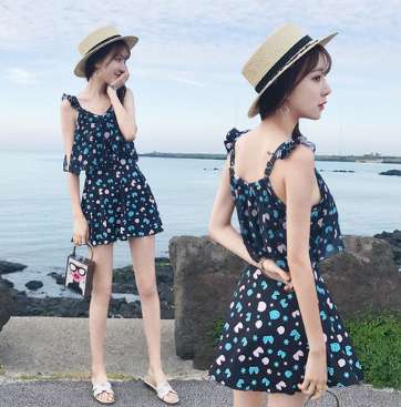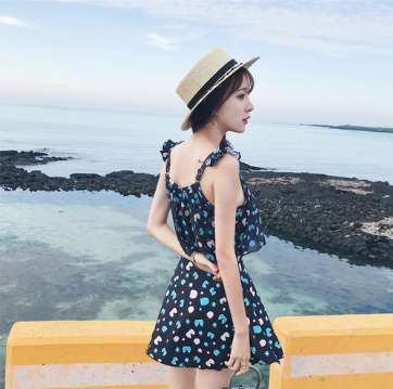 体型カバー 水着 ワンピース 大きいサイズ レディース 2019年新作 ビーチウェア 40代 30代 フレアスカート パッド付き フリル オールインワン インナーパンツ 着やせ 韓国 ママ オシャレ かわいい XL 海 プール マリンスポーツ ブラック