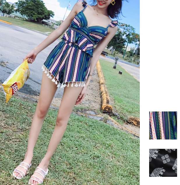 ショートパンツのフリンジがユニークで可愛いです♪