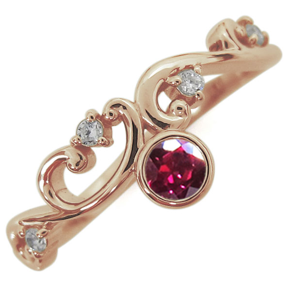 7月誕生石 ルビー 唐草リング レディース 指輪 K18