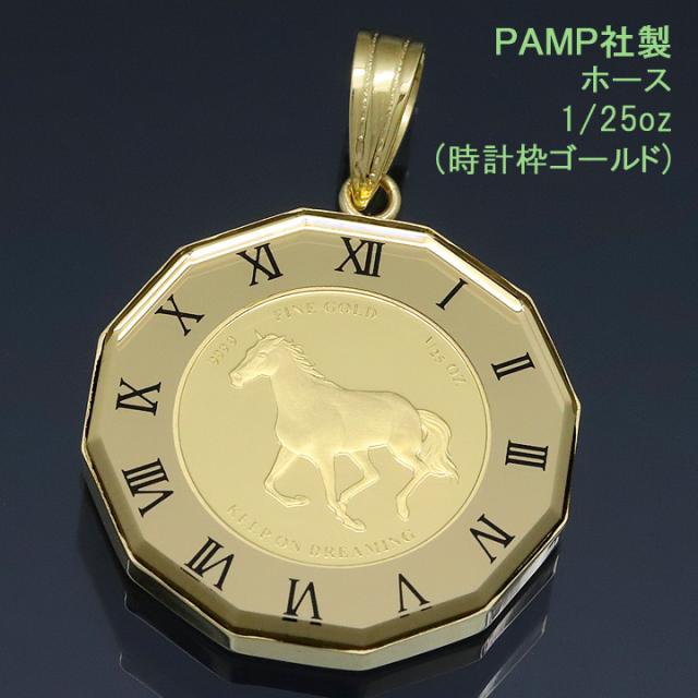 コイン トップ ペンダントトップ ペンダントヘッド ホース 24金 K24 純金 1/25oz 馬モチーフ 蹄鉄 (ホースシュー) PAMP社製 【誕生日 お祝い プレゼント 贈り物 ギフト】【dgpcp】