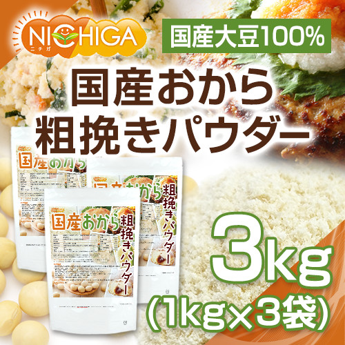 (NEW)国産おから 粗挽きパウダー(粗粉末) 1kg×3袋 国産大豆100% 遺伝子組み換え大豆不使用 NICHIGA(ニチガ) TKS