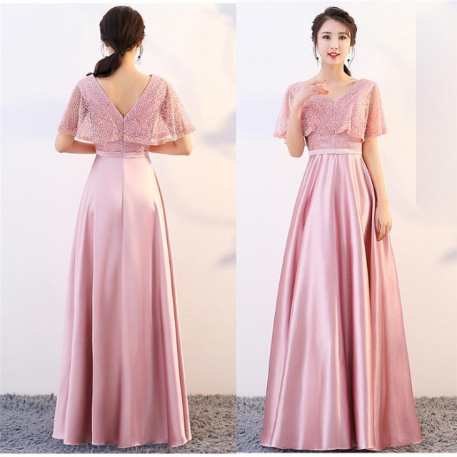 Vネック パーティードレス ブライズメイド 司会者 二次会 花嫁 結婚式 ホテル カラー 制服 合唱団 コーラス レース 5分袖 ドレス ワンピース ロングドレス 謝恩会 卒業パーティー 大きいサイズ da513c0c0c0