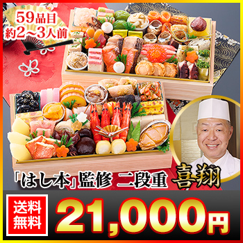 長方形がりみぞ二段和風おせち 【59品目・2〜3人前】 大阪北新地 「はし本」監修おせち 喜翔 【送料無料】 冷蔵おせち 冷蔵 おせち お節 御節