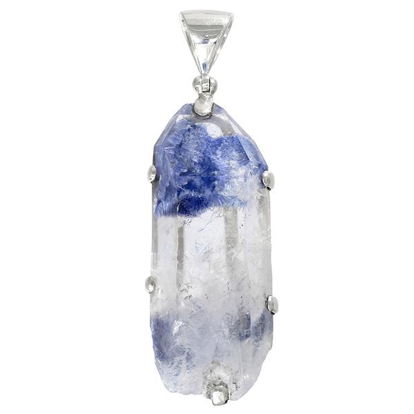 とても希少なデュモルチェライト-イン-クォーツの原石を留めたペンダントトップです。