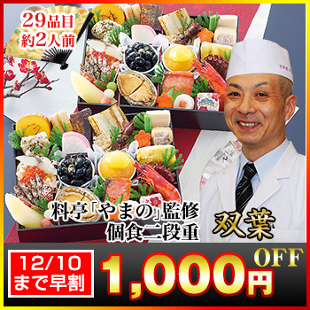 個食二段和風おせち 【29品目×2段・2人前】 京都御所南 京料理「やまの」監修個食二段重 双葉 【送料無料】 冷蔵おせち 冷蔵 おせち お節 御節