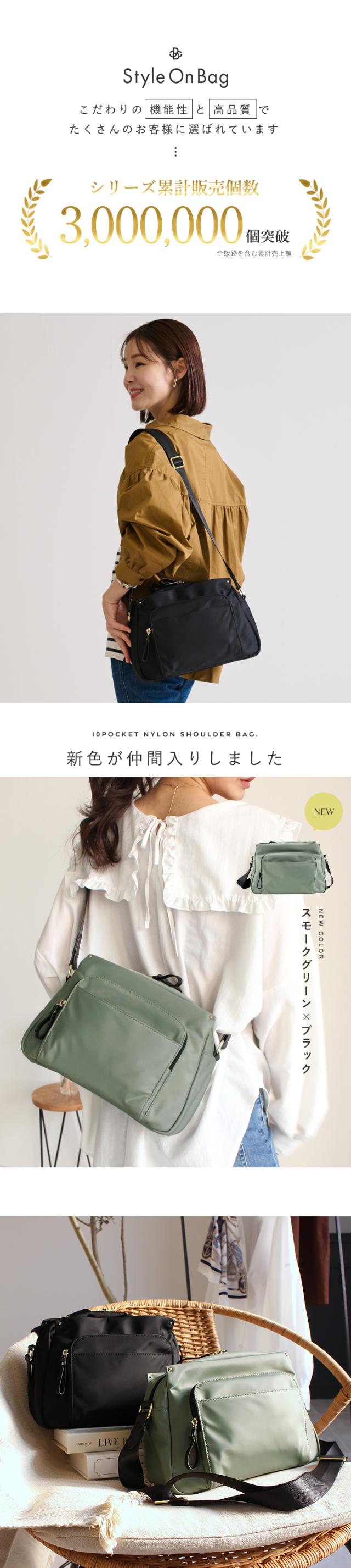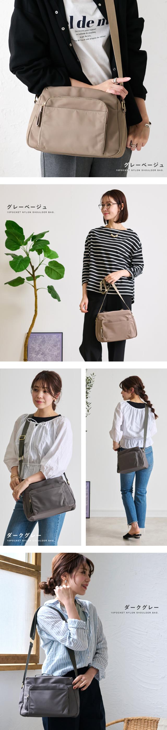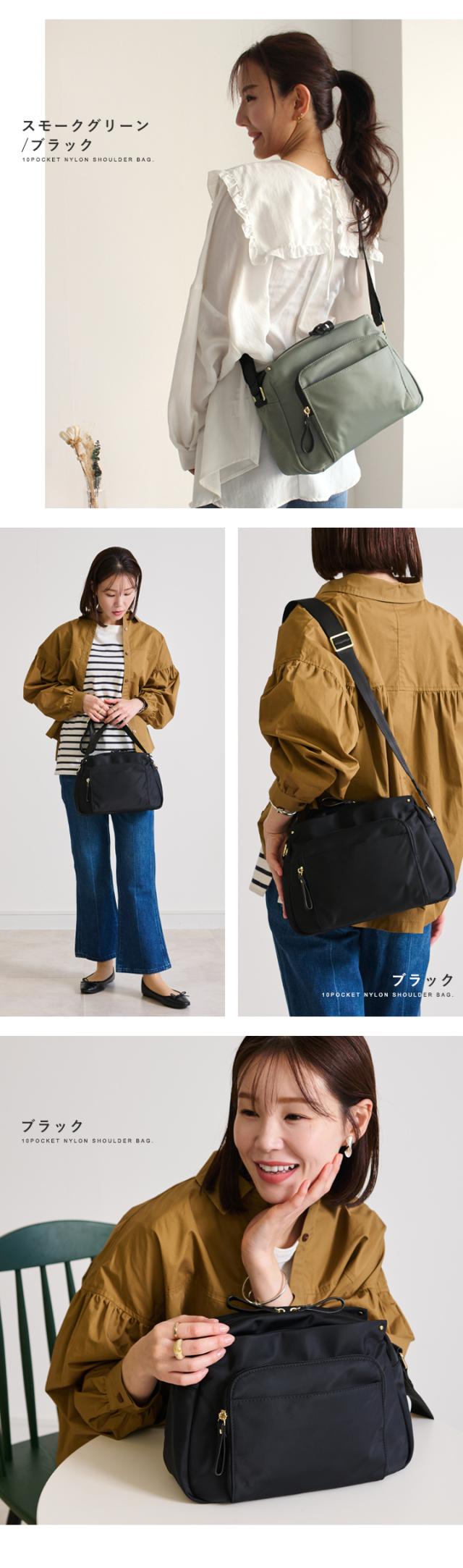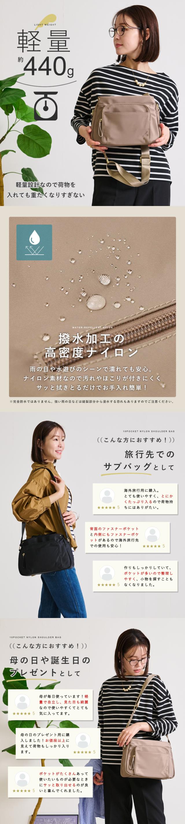 ショルダーバッグ レディース 撥水ナイロン 異素材 ナイロンバッグ はっ水 防水 斜め掛け 肩掛け かわいい 軽い 軽量 多収納 大容量 10ポケット ポケット たくさん おでかけ シンプル 無地 大人 LIZDAYS リズデイズ スタイルオンバック【lz-153r】