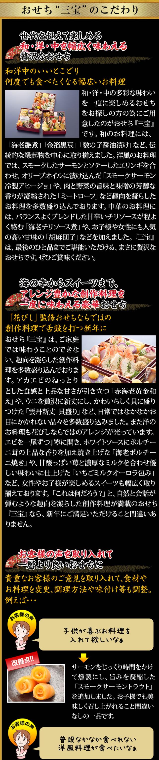 ●商品名/北海道函館「花びし」監修和洋中おせち 三宝