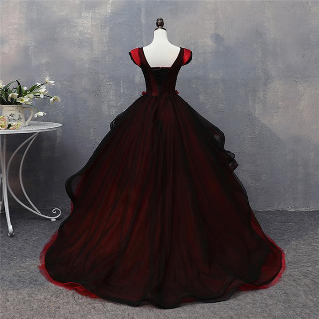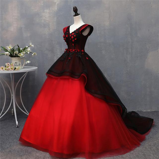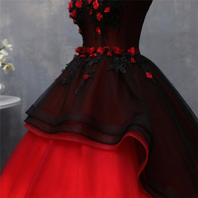 豪華な ロングドレス 演奏会 ドレス ロング ステージ 赤×黒 カラードレス ウエディングドレス ロングドレス パーティードレス 礼服 姫系ドレス お花嫁ドレス イベント 結婚式 パニエ付き サイズ指定可 da531c0c0c0