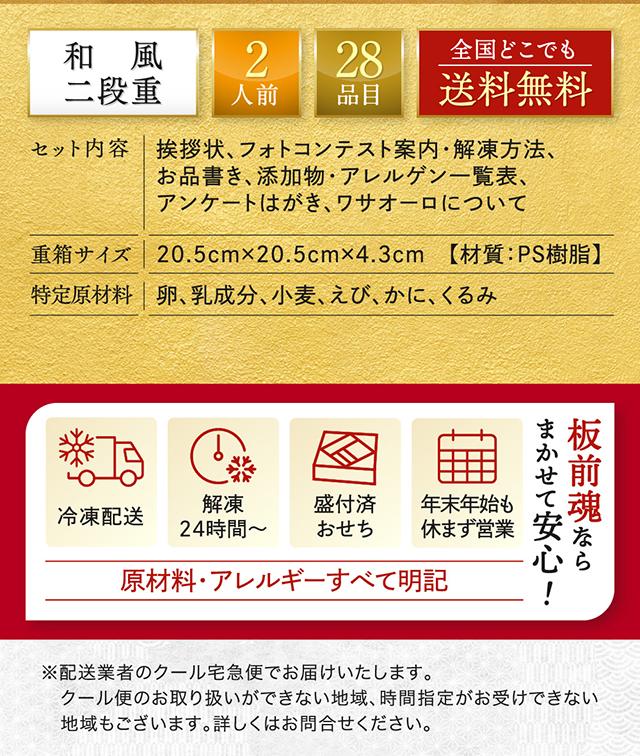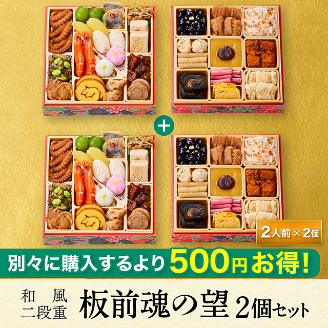 【本日限定!ポイント5倍+最大2,000円OFFクーポン】おせち 完売間近 予約 おせち料理 板前魂の望 2個セット 和風二段重 2人前 28品目 人気 正月 冷凍 食品 2025 2026 送料無料