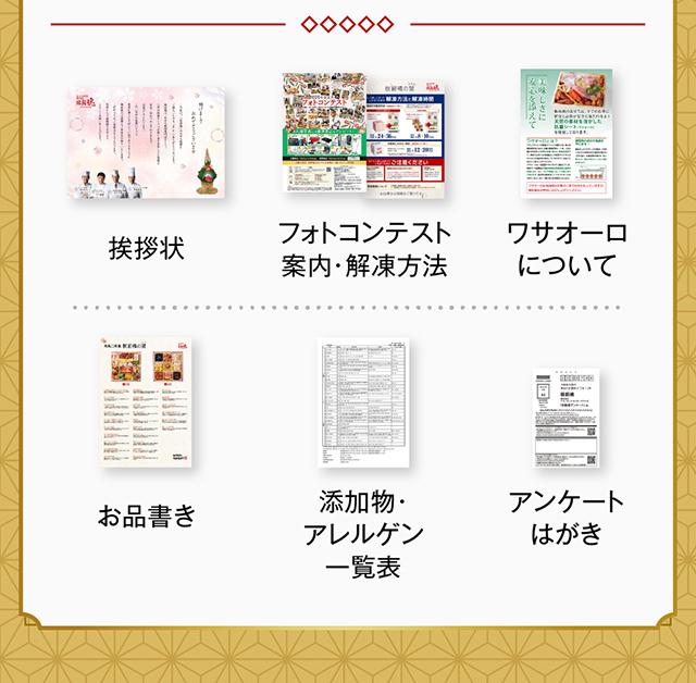 (お品書き、添加物・アレルゲン一覧表、解凍方法付き)