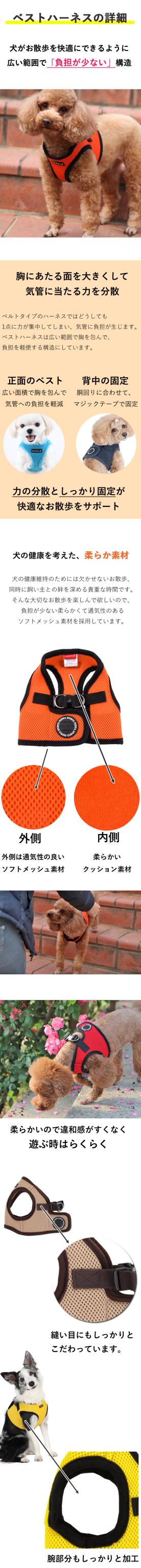 ● 首への負担が少ない「ベスト型」ハーネスです。