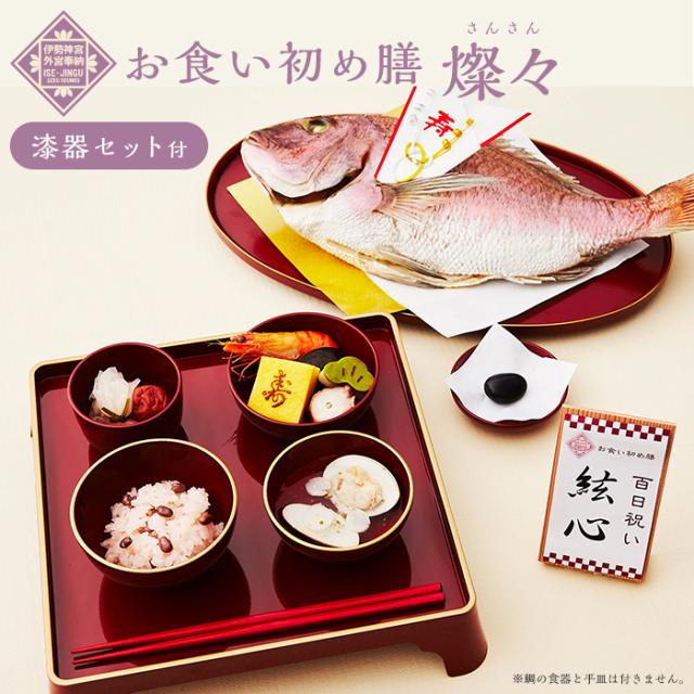 お食い初め セット【お食い初め膳 -燦々-(食器セット)】 食器不要・盛付済のお食い初めセット 国産天然真鯛 歯固め石 手引書