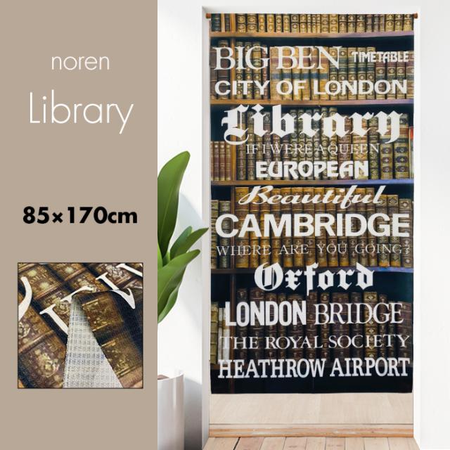 のれん 暖簾 おしゃれ カーテン 間仕切り 仕切りカーテン 目隠し ロング アメリカン インダストリアル ブルックリンスタイル 英語 英字 図書館 本 ブックストア ブリティッシュ ライブラリー 85×170cm