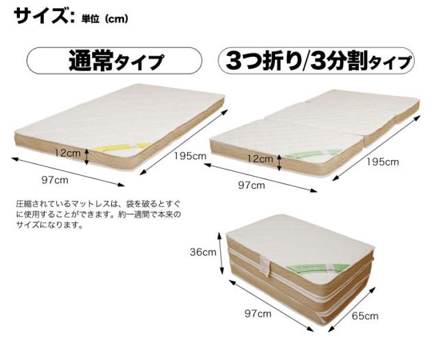 薄型ポケットコイル 厚さ12cm マットレス シングル (通常/三つ折り) EN120P