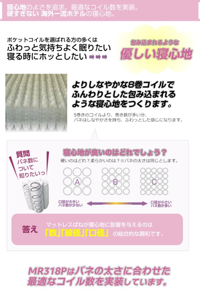ポケットコイル マットレス シングル MR318P ポケットコイル スプリング 【大型商品につき日時指定不可】