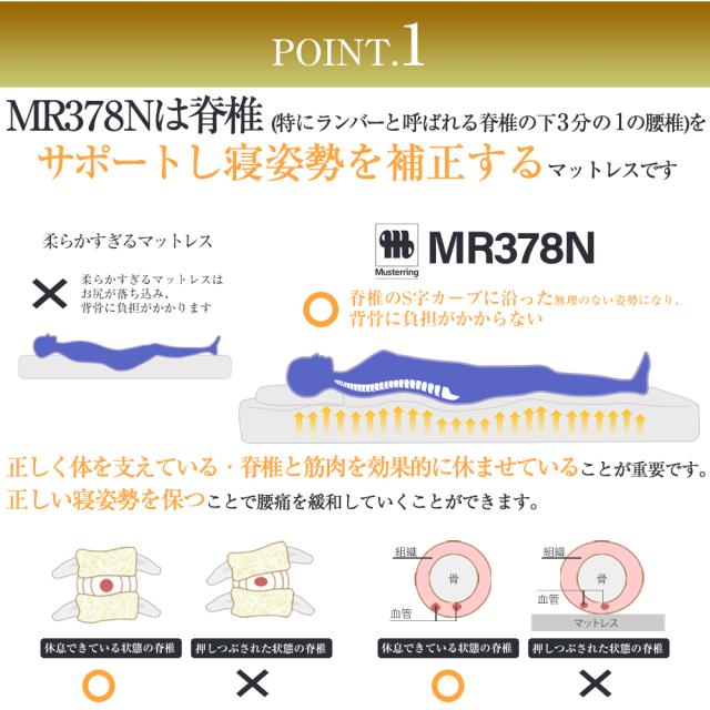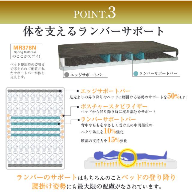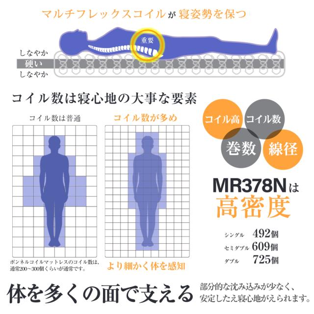 マットレス ダブル スプリングマットレス MR378N 寝姿勢 体圧分散 腰の負担軽減 ランバーサポート【大型商品の為日時指定不可】