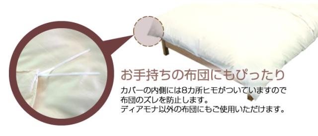 中央ボタン式で出し入れしやすい。ディアモナの掛け布団にジャストサイズのコンフォーターケースです。一度使用すると手放せなくなる商品です。【生地】綿100%210本サテン