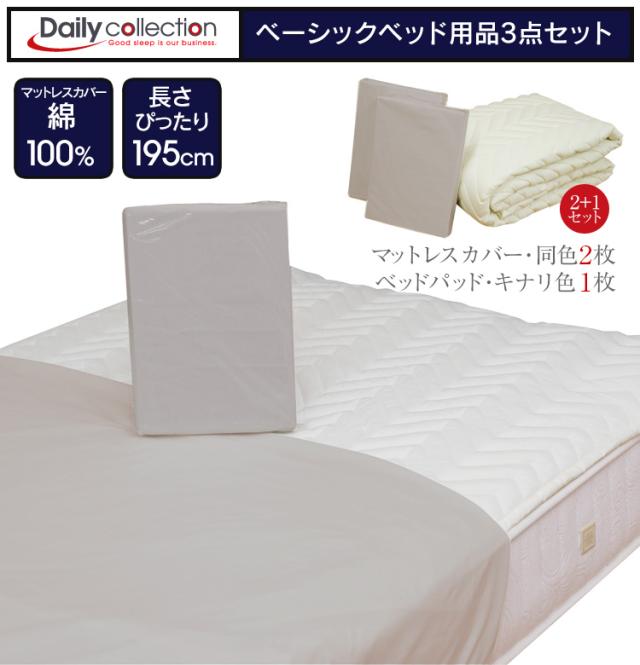 マットレスカバー2枚、ベッドパッド1枚のベッド用のお得なセット