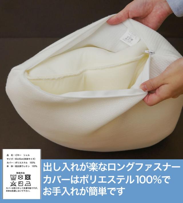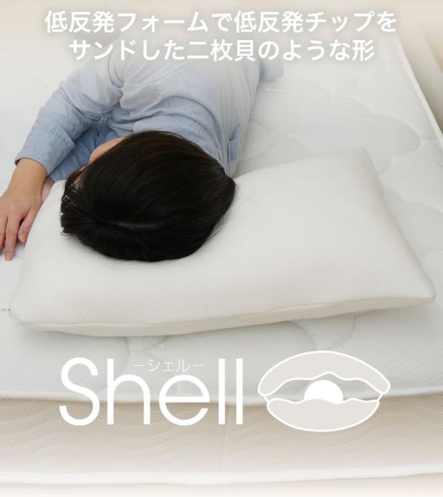 ウレタンチップを2枚の低反発で挟んだシェル(貝)の形状をした枕。ソフトでありつつ弾力性もあり、頭をしっかりと支えてくれます。