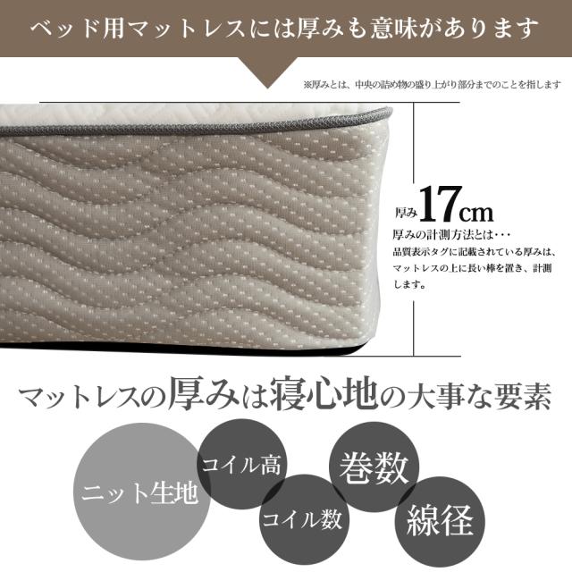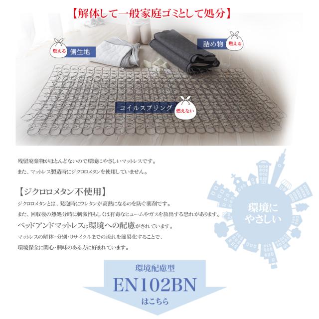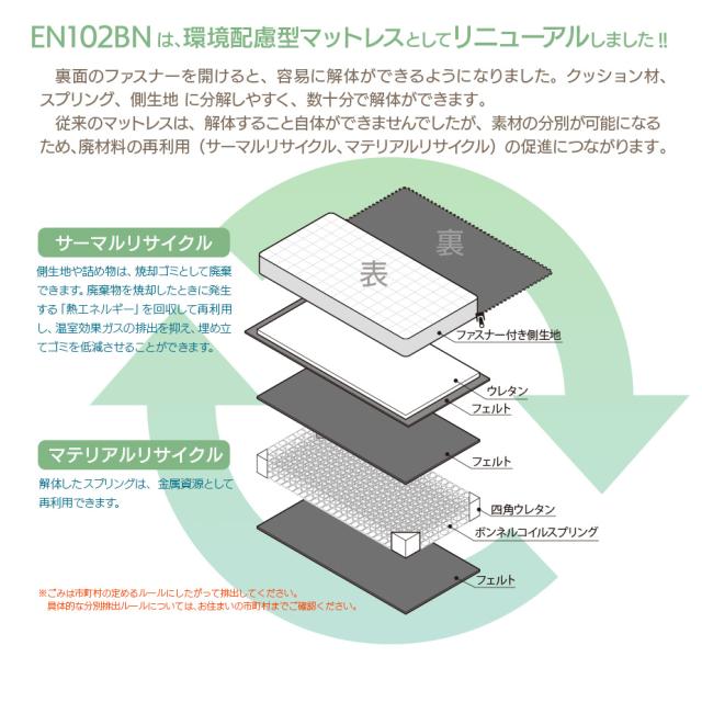 環境配慮型 分解できる ボンネルコイル マットレス 厚み17cm このクラス最高の硬いバネ使用 ボンネルコイル シングル または 85スモールシングル EN102BN 耐久性 ニット生地