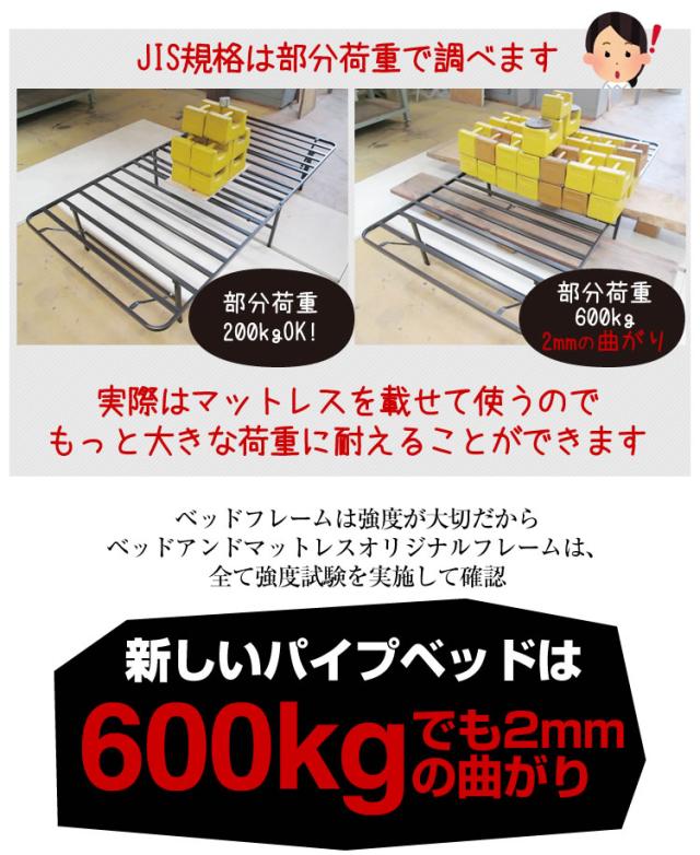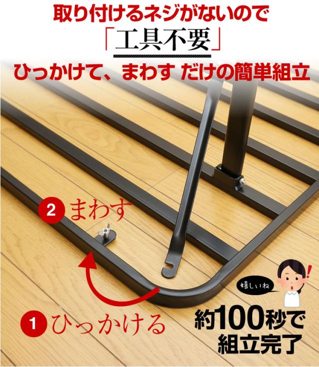 敷き布団や、金属バネの入っていない薄めのマットをお使いの場合、フレームの上にベニヤ板などを必ずお敷き下さい。