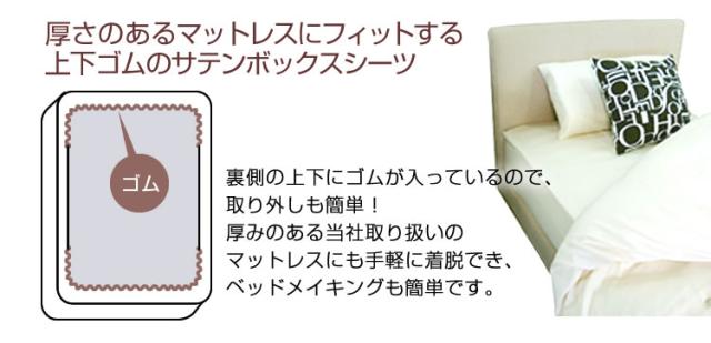 厚さのあるマットレスにフィットする上下ゴムのサテンボックスシーツ