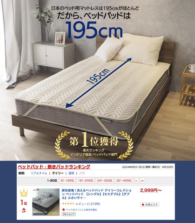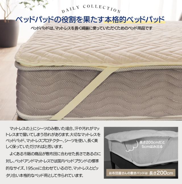 幅の狭い 小さい ベッドパッド 【60スモールシングル】または【70スモールシングル】【80スモールシングル】デイリーコレクション 送料無料