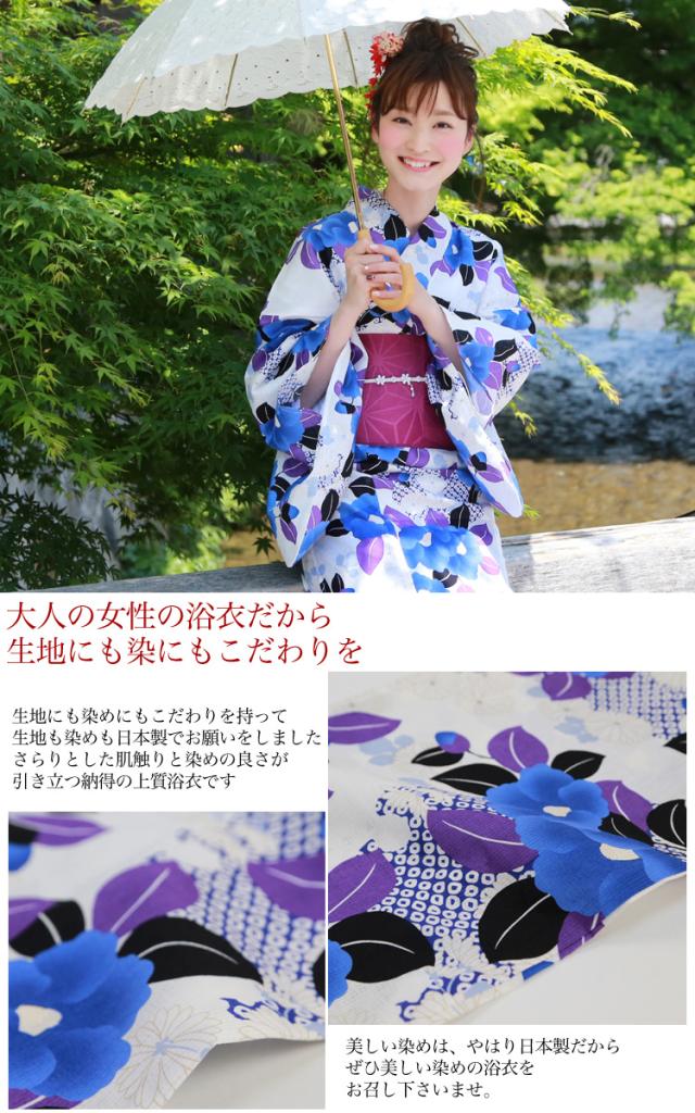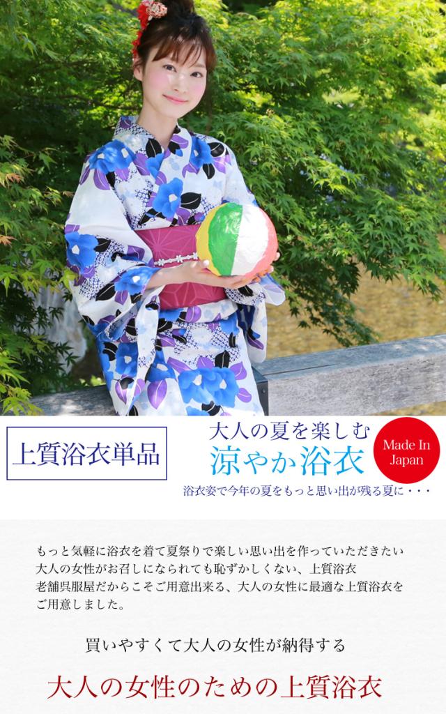 | 備考 | ※浴衣の柄の配置はモデル着用とまったく同じではございません。予めご了承下さいませ。 ※日本製生地日本製染め・縫製中国 | |||