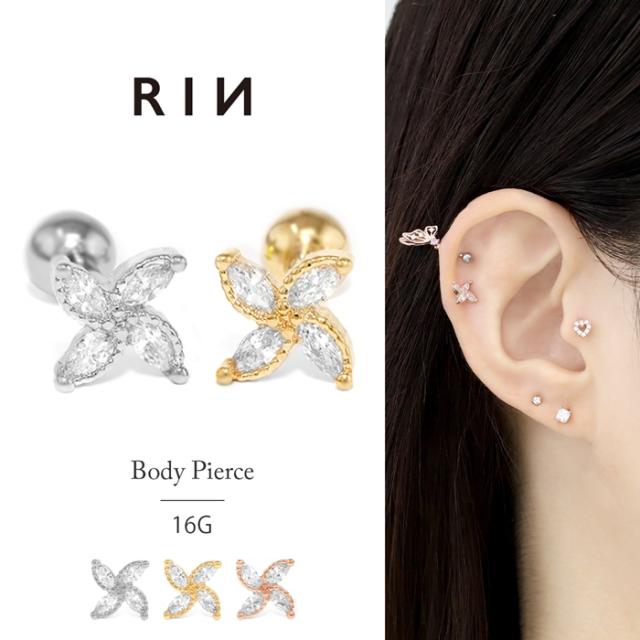 16Gフラワー 花 ジュエル ジルコニア ボディピアス ストレートバーベル おしゃれ 軟骨0465 t1141-0022