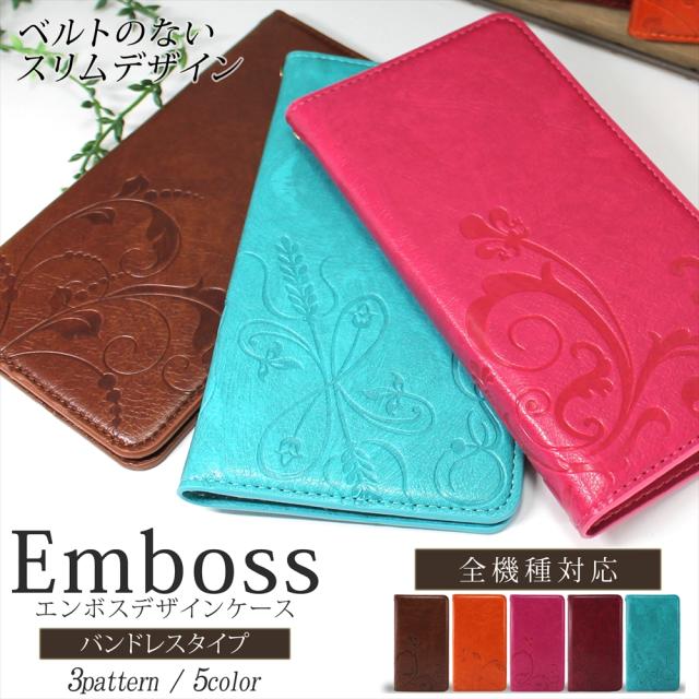 エンボスデザイン ベルトなし 型押し 手帳ケース