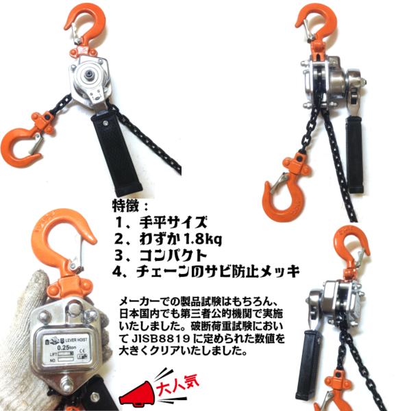 レバーホイスト 0.25t V2 軽量 チェーンローラー 高品質 チェーンブロック レバー式 荷締機 ガッチャ がっちゃ