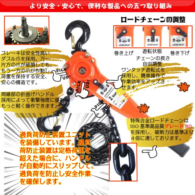 レバーホイスト 2t チェーンブロック チェーンホイスト レバー式 ブロック ガチャガチャ がっちゃ 工具 吊上げ 吊り 送料無料