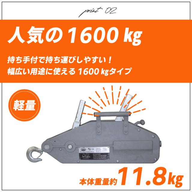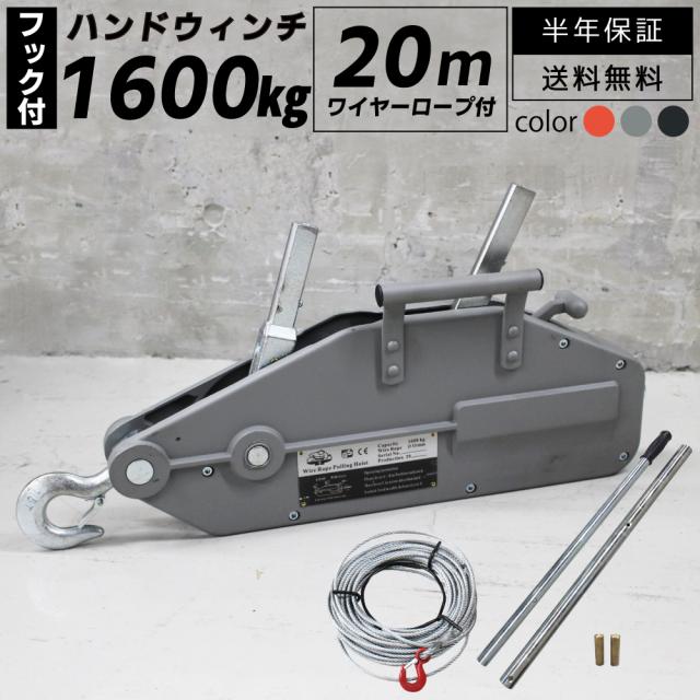 ハンドウィンチ 1600kg チルホール ハンドウインチ 20m ワイヤーロープ レバーホイスト 携帯ウィンチ 荷締機 土木 建設 林業 伐採 牽引 重量物 工具 送料無料