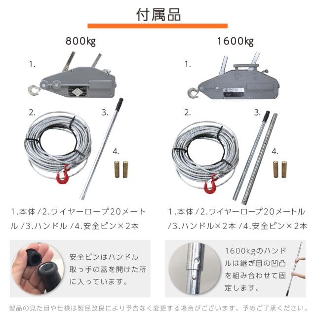 ●安全ピン2個(本体の持ち手の中に入っています。)●使用用途は林業、機械の据え付け、重量物作業、緊急時対応等